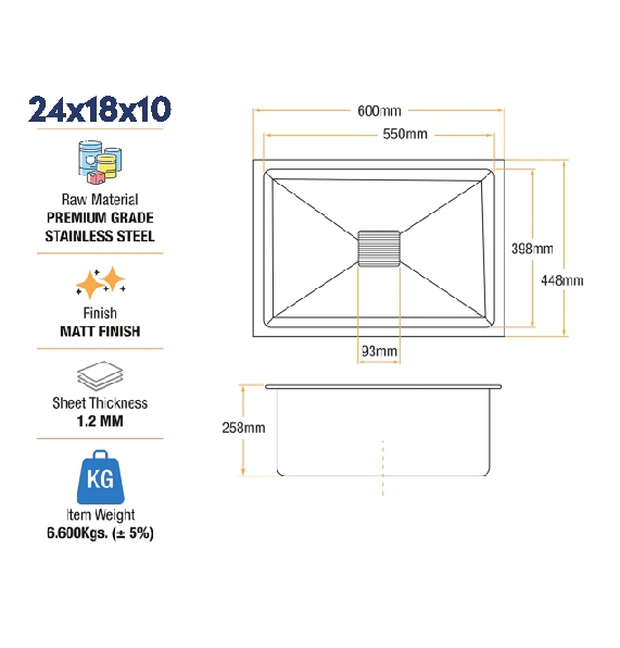 Royal Tap Hole Sink(SS-202 / SS-304)