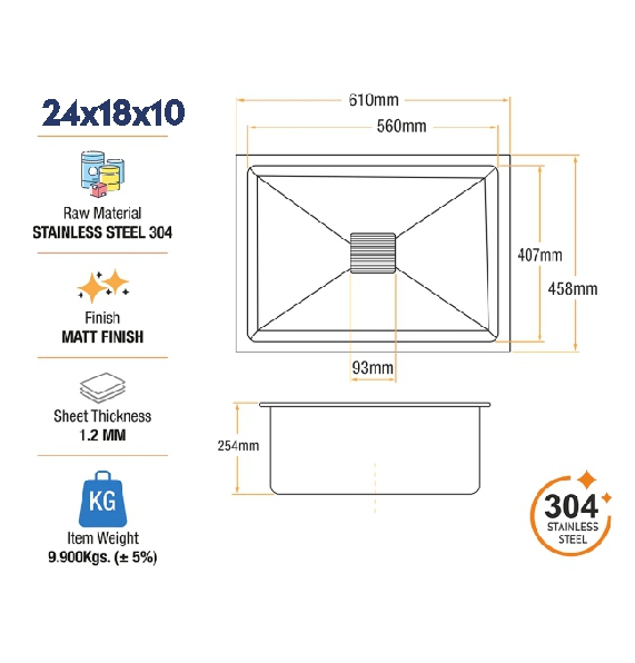 Royal Tap Hole Sink(SS-202 / SS-304)